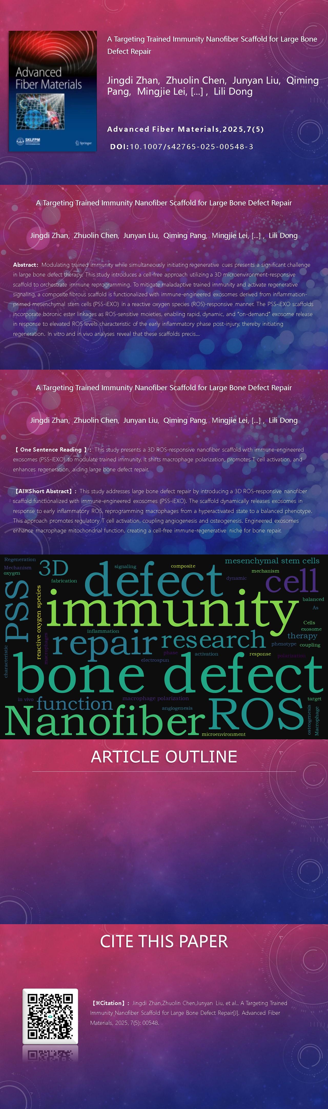 Jingdi Zhan, Zhuolin Chen, Junyan Liu, Qiming Pang, Mingjie Lei, Jiacheng Liu, Yang Song, Wei Huang, Lili Dong. A Targeting Trained Immunity Nanofiber Scaffold for Large Bone Defect Repair[J]. Advanced Fiber Materials, 2025, 7(5): 00548