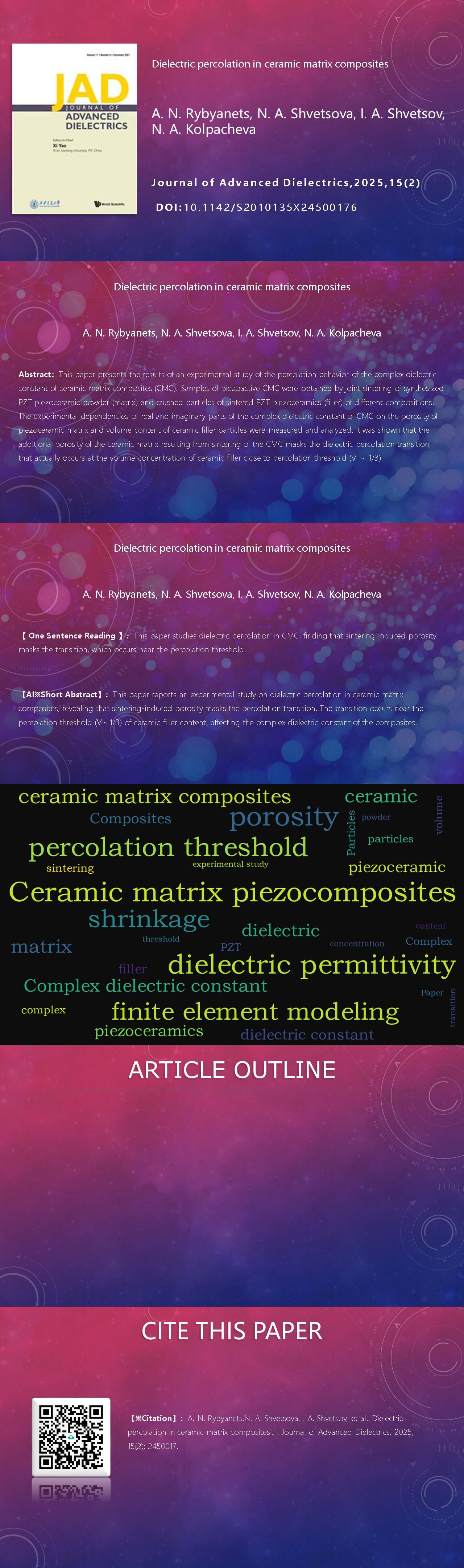 A. N. Rybyanets, N. A. Shvetsova, I. A. Shvetsov, N. A. Kolpacheva. Dielectric percolation in ceramic matrix composites[J]. Journal of Advanced Dielectrics, 2025, 15(2): 2450017