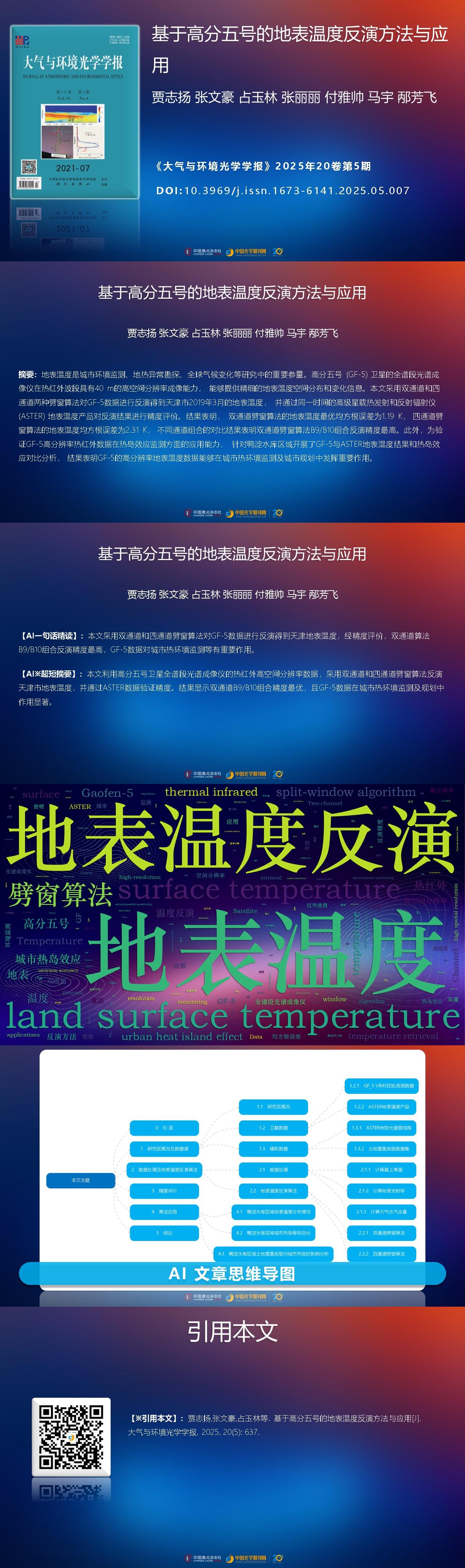 Zhiyang JIA, Wenhao ZHANG, Yulin ZHAN, Lili ZHANG, Yashuai FU, Yu MA, Fangfei BING. Surface temperature retrieval methods and applications based on Chinese Gaofen-5 satellite[J]. Journal of Atmospheric and Environmental Optics, 2025, 20(5): 637